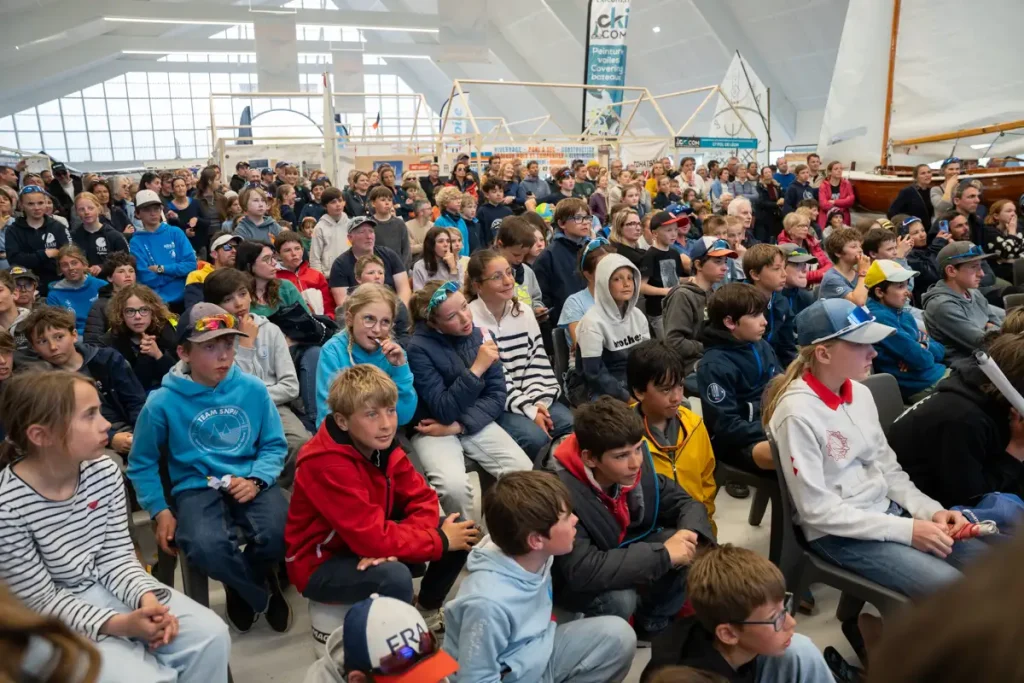 A terre, la journée est consacrée au thème de la décarbonation en mer. des expositions sur la poussée vélique et une table ronde sur le même thème sont présentées salle du Kelenn.
